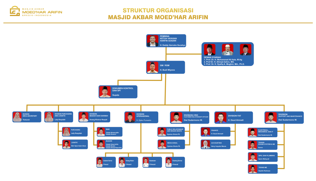 Masjid Akbar Moed’Har Arifin dibangun dan dibiayai sepenuhnya oleh Pendiri dan Keluarga melalui Yayasan Harfin Gosari.